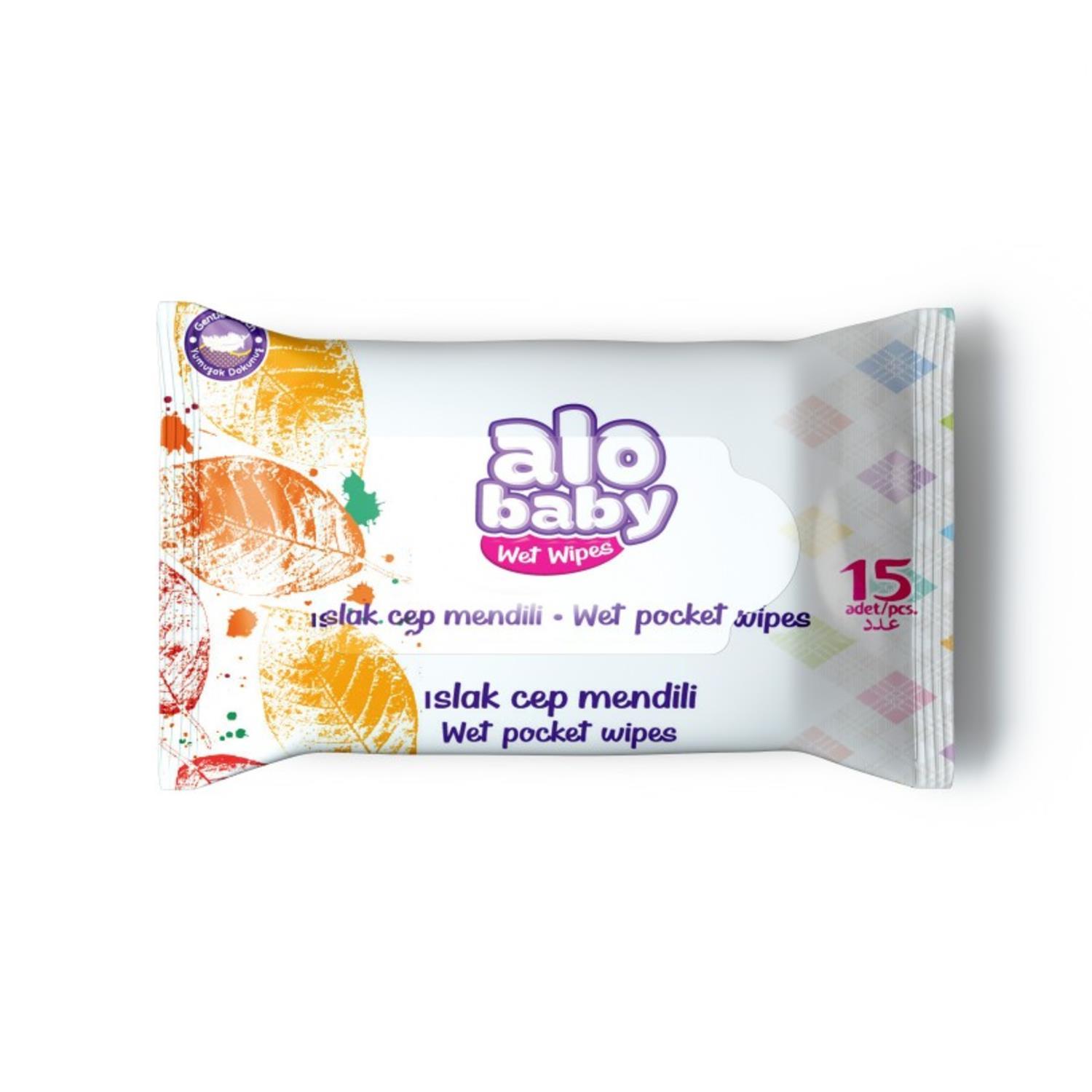 Alo Baby Fubu Cep Boy Islak Mendil (15 Yaprak), pratik taşınabilir ambalajı sayesinde günlük kullanımda hijyen ve temizlik ihtiyaçlarınıza kolaylık sağlar.