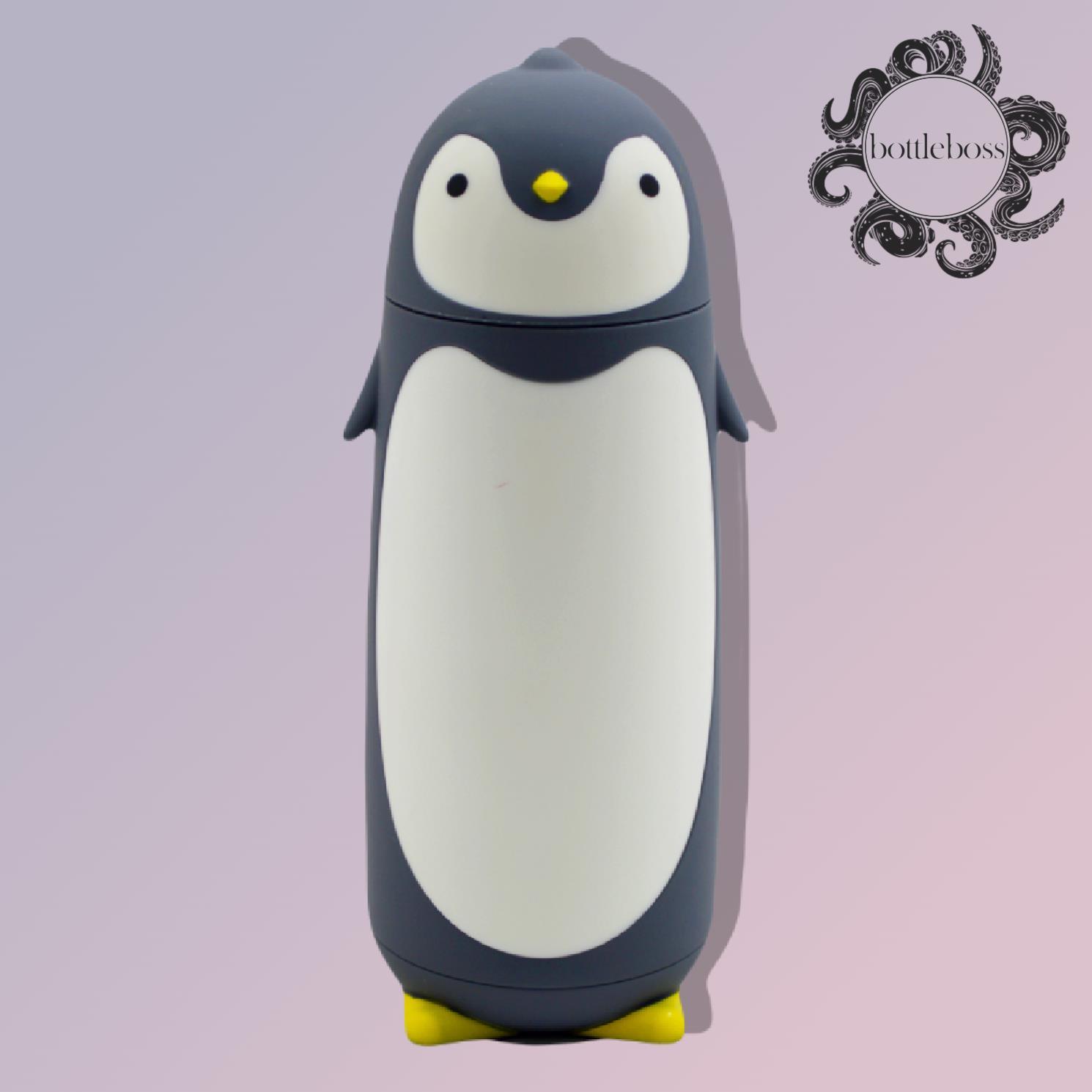 BottleBoss Penguen Figürlü Paslanmaz Çelik Çocuk Matarası 350 Ml Gri