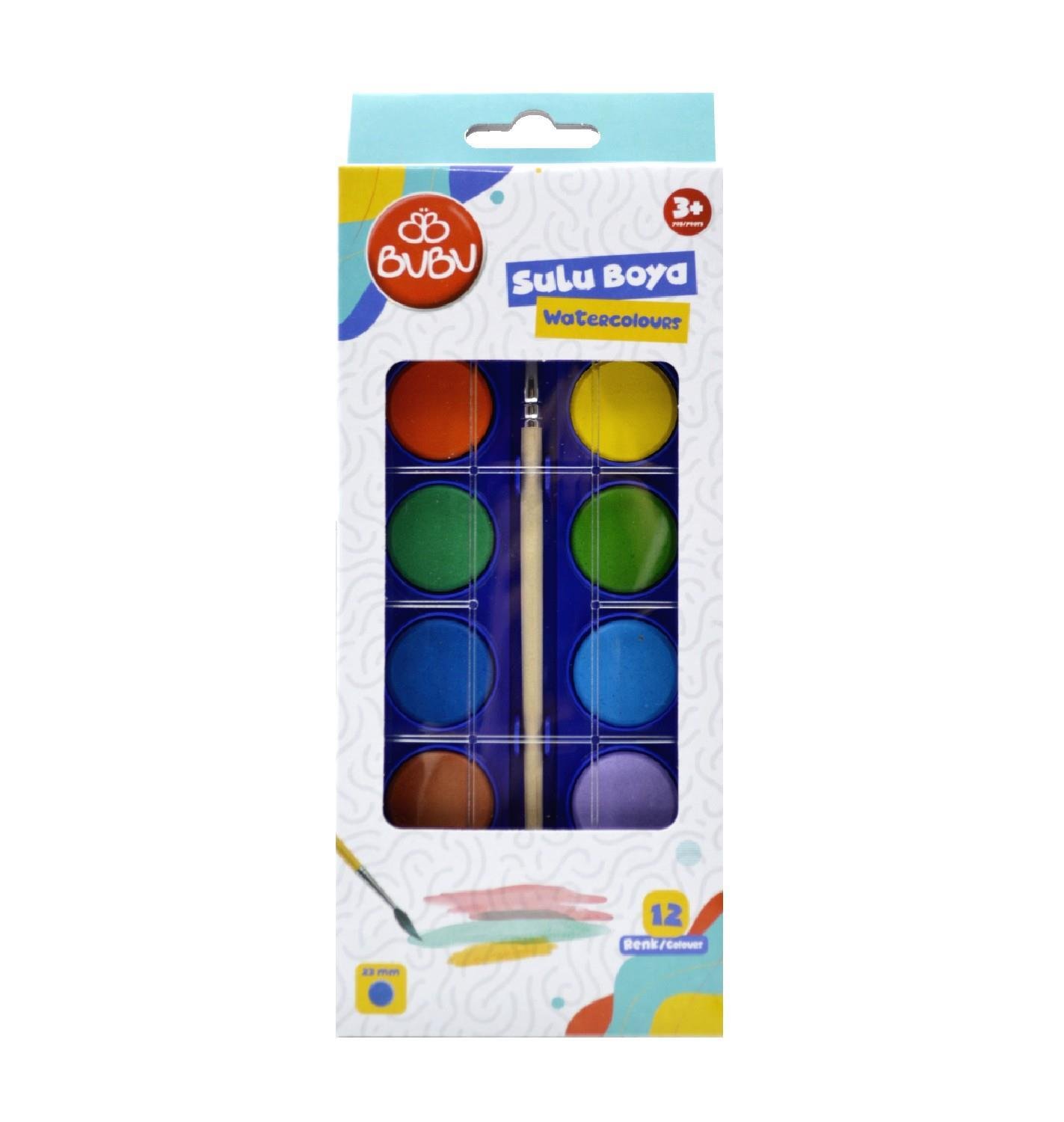Bubu 12 Renk Sulu Boya 23mm (BUBU-SUL001)