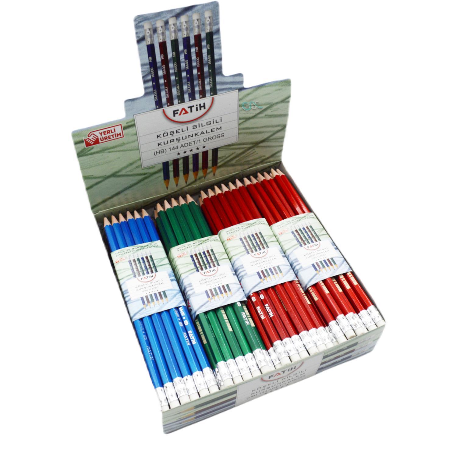 Fatih Köşeli HB Silgili Kurşun Kalem 144 Adet