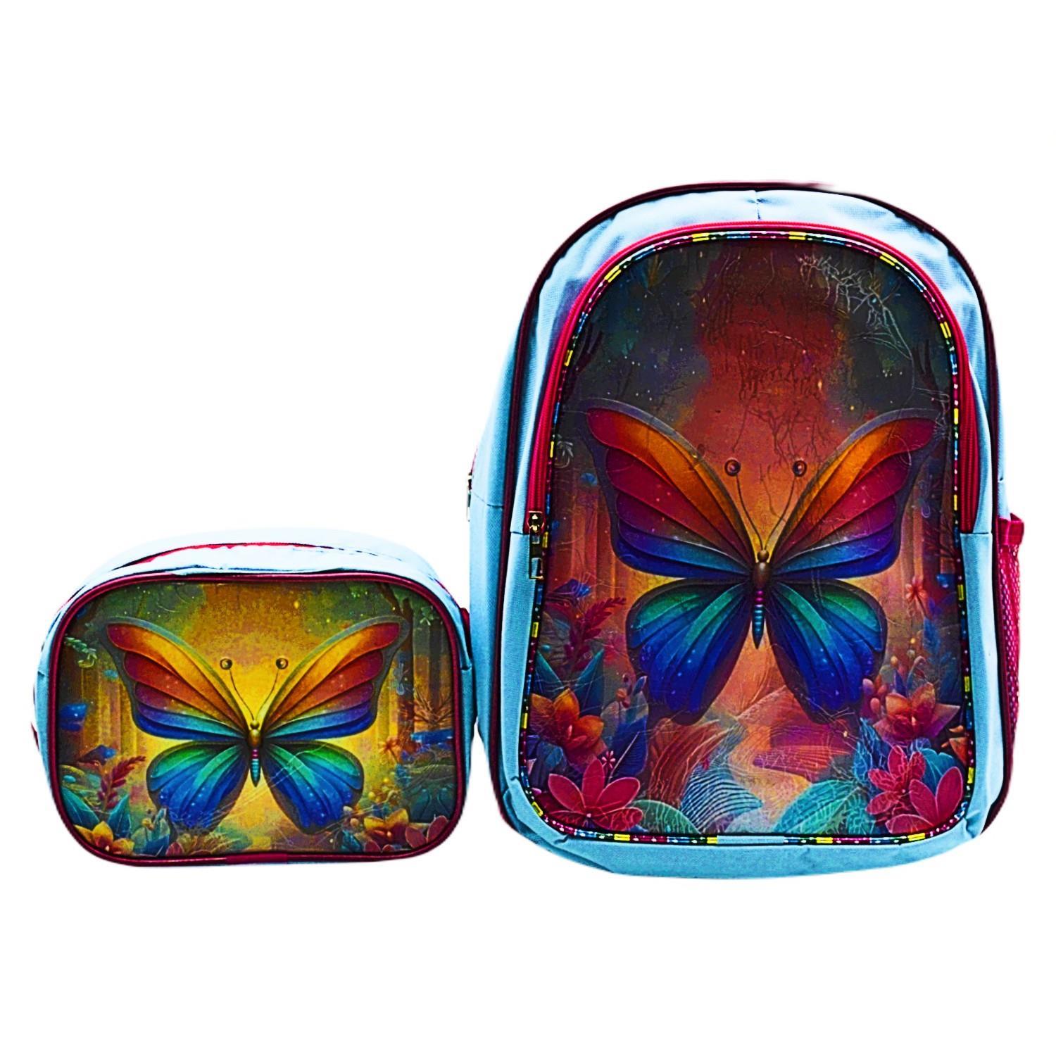 Gen-Of 2 Bölmeli Kelebek Okul Sırt Çantası Ve Beslenme Çantası Turkuaz KOD:1308