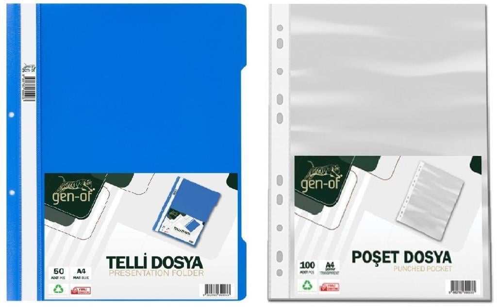 · Gen-Of Telli Dosya mavi 50 adet ve Gen-Of poşet dosya 100 adet olmak üzere iki ürün ekonomik bir pakettir.