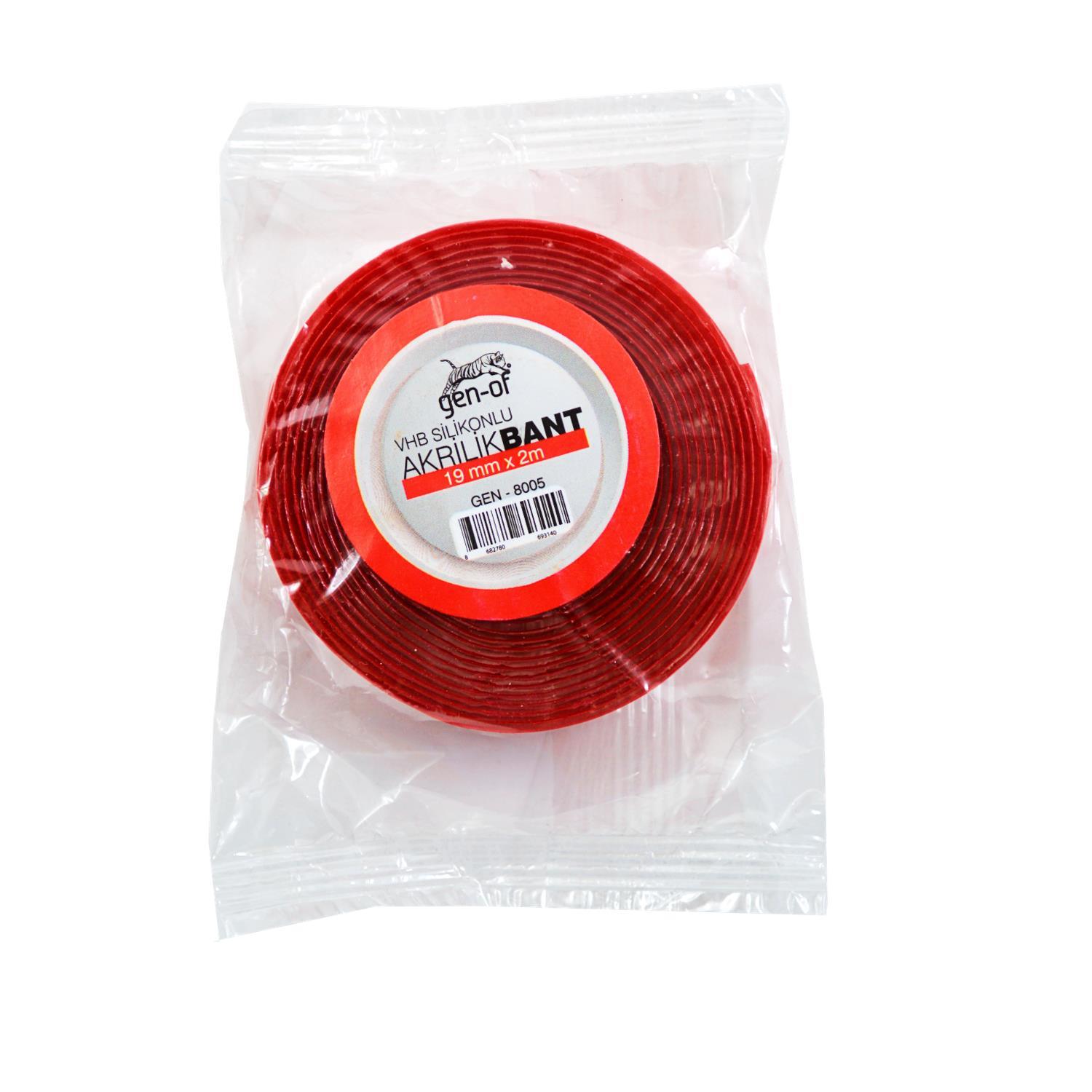 Gen-Of VHB Silikonlu Çift Taraflı Akrilik Bant 19mmx2m Kırmızı 1 Adet