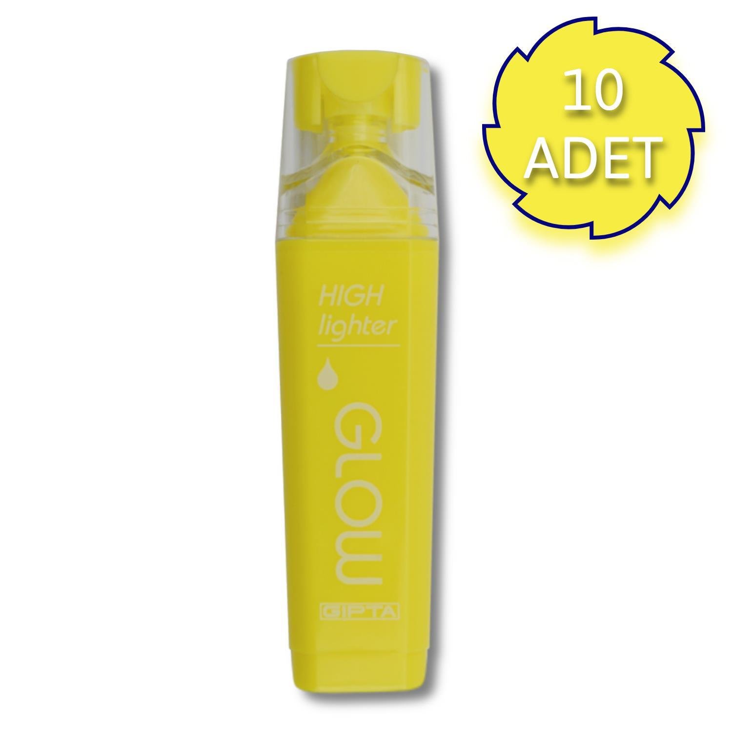 Gıpta Glow Kesik Uç Neon Sarı Fosforlu Kalem 10 Adet