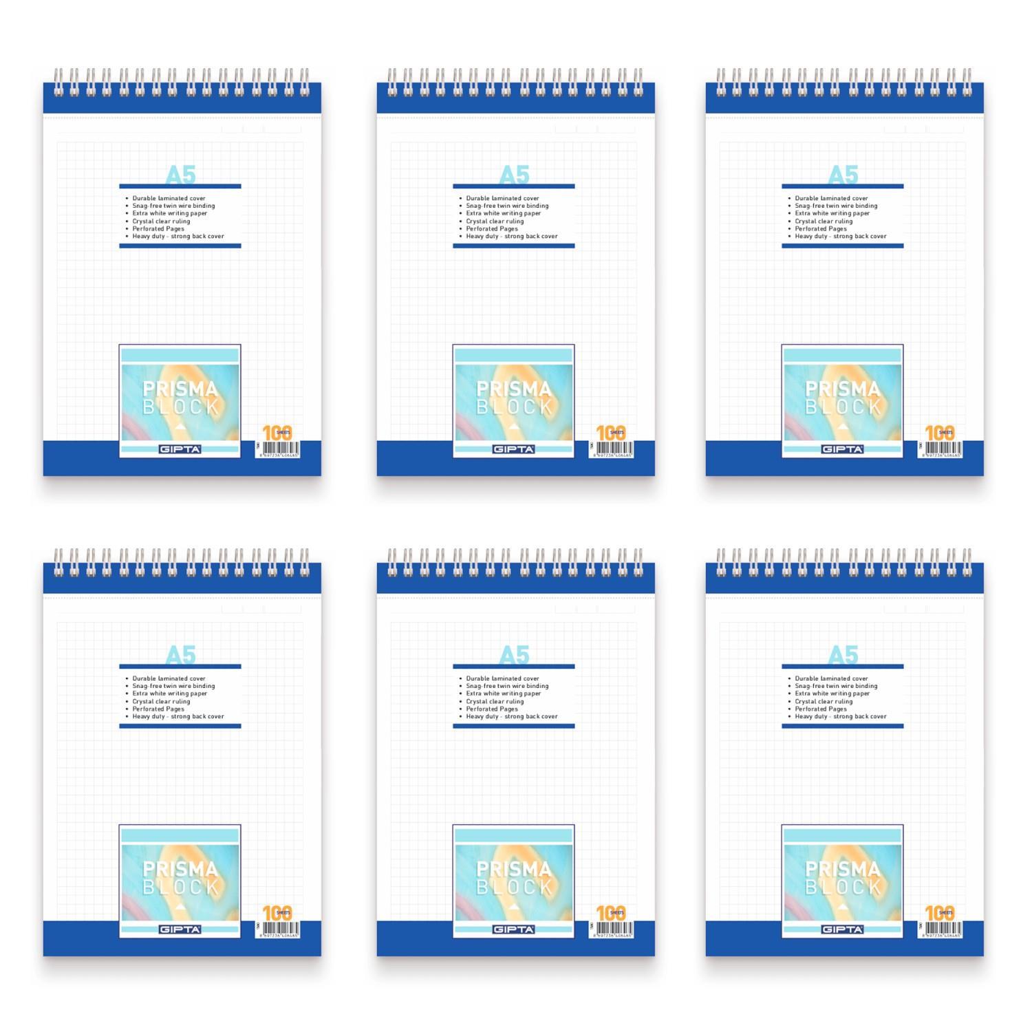 Gıpta Prisma A5 Üstten Spiralli Bloknot 100 Yaprak Kareli 6 Adet