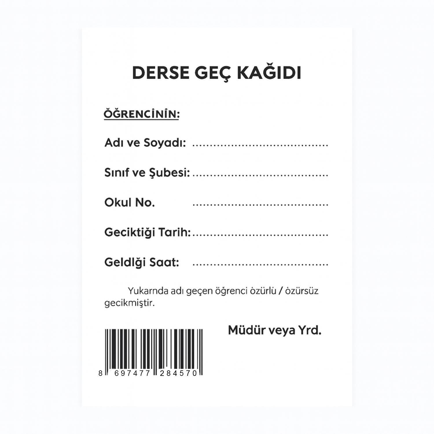 Okul disiplininin sağlanmasına yardımcı olan Gülpaş Derse Geç Kağıdı, her öğretmen masasının ve idare ofisinin olmazsa olmazıdır!