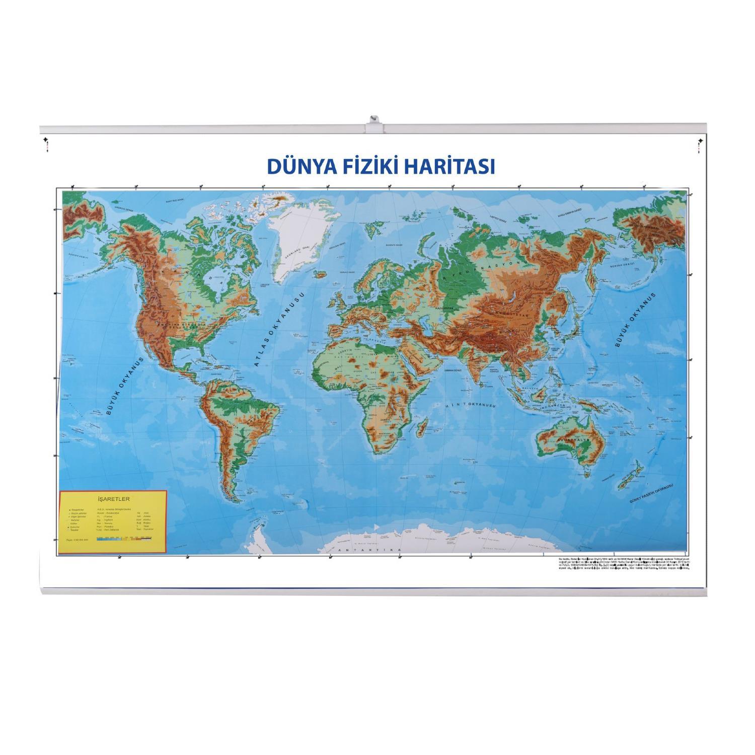 Gülpaş 70x100 Çıtalı Dünya Fiziki ve Siyasi Haritası