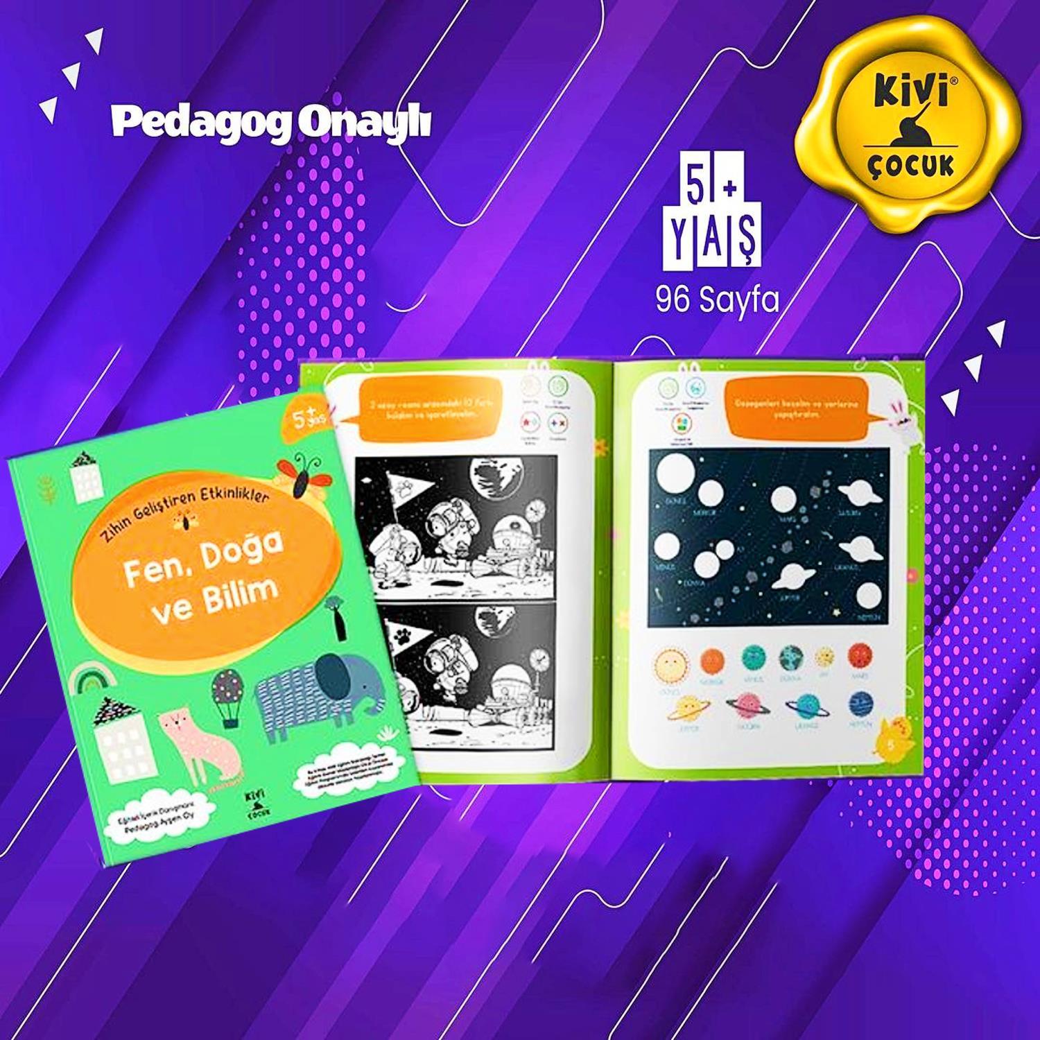 Milli Eğitim Bakanlığı Okul Öncesi Eğitim Programı kazanımlarına uygun olarak okul öncesi çocukların görsel / işitsel algıları dikkate alınarak Pedagog Ayşen Oy ‘ un hazırladığı Zihin Geliştiren Etkinlikler Fen , Doğa be Bilim Kitabı ile çocukların Dünya ‘ yı ve canlıları tanımaları , fen ve doğa alanında farkındalık kazanmaları amaçlanmıştır.