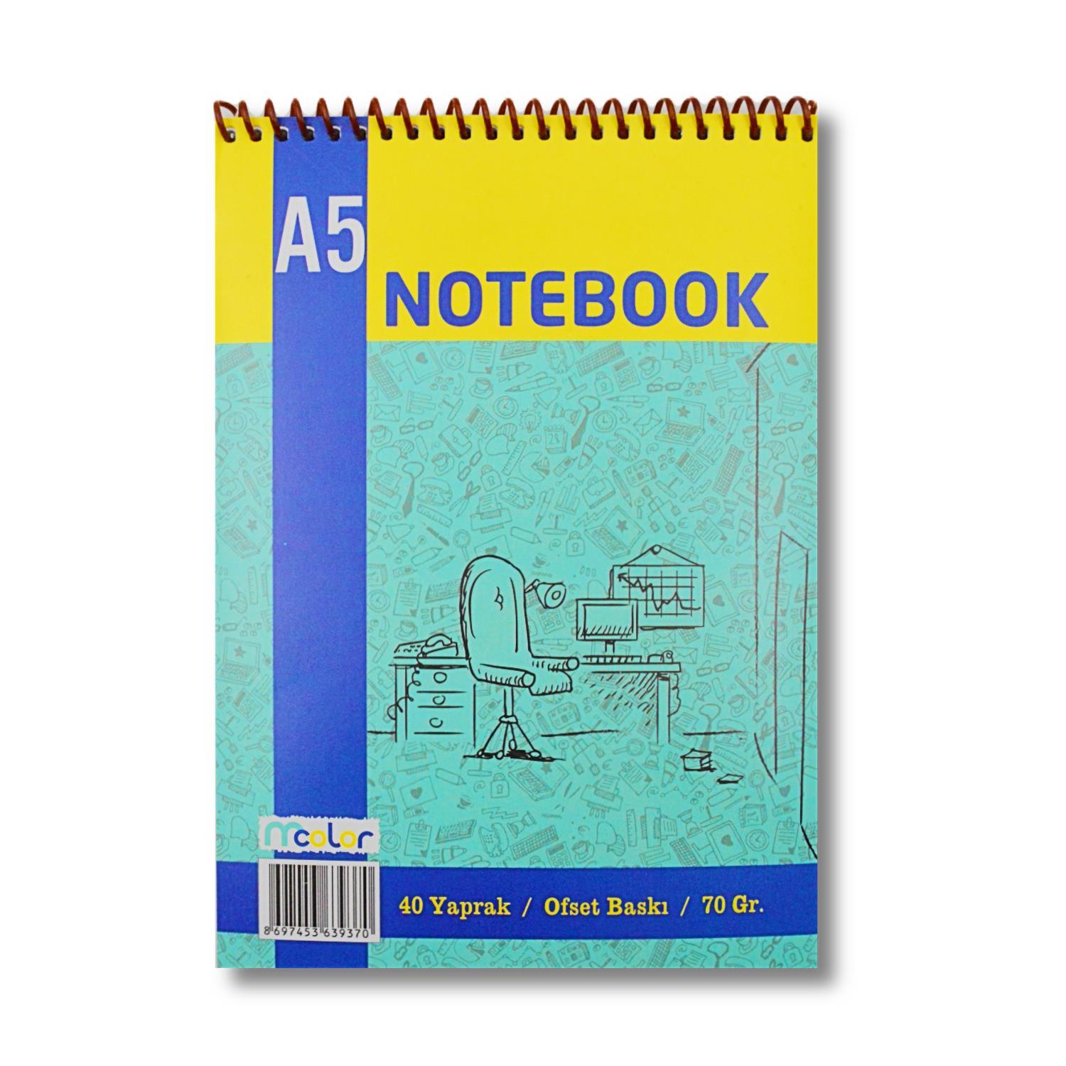 MColor A5 40 Yaprak Karton Kapak Üstten Spiralli Bloknot Kareli