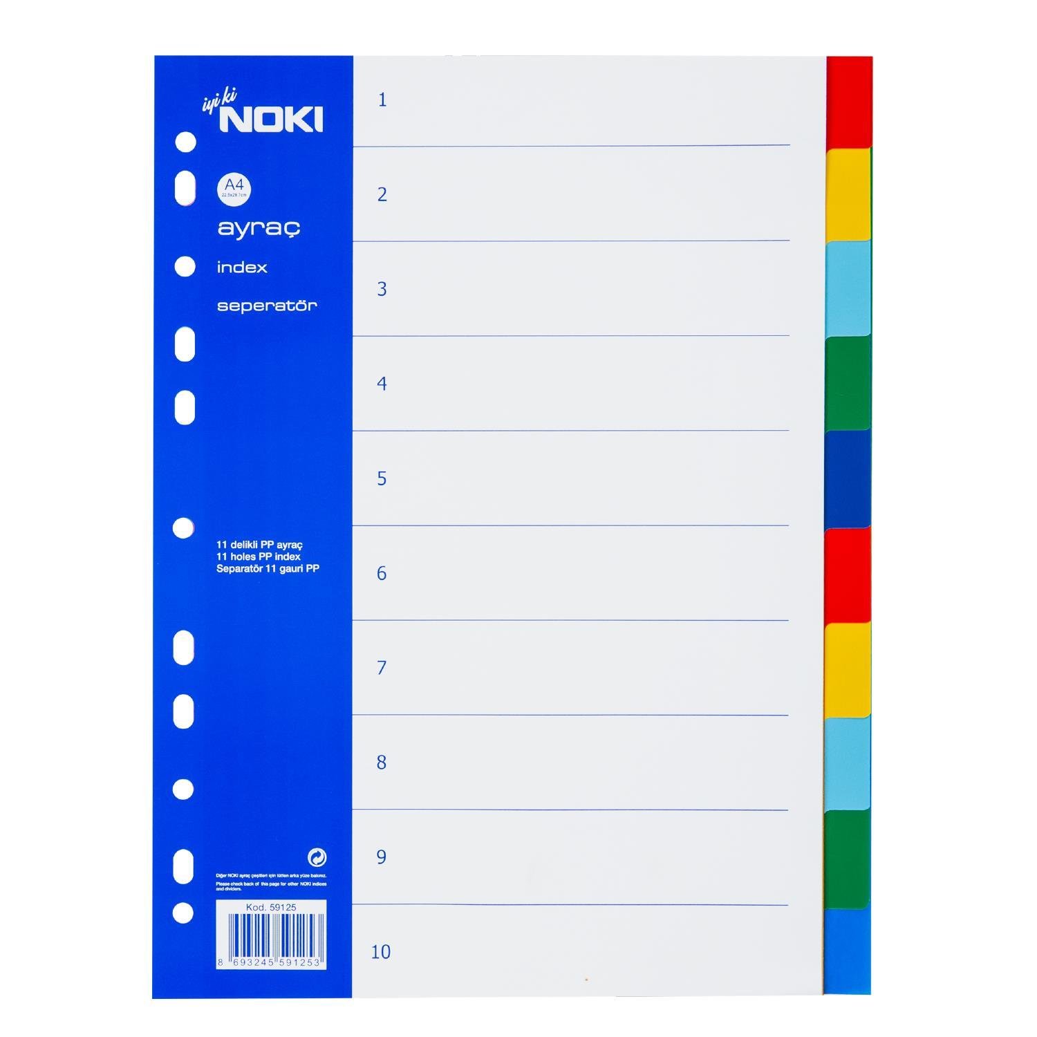 Noki 10 Renkli Ayraç Seperatör, evraklarınızı, okul notlarınızı veya iş dosyalarınızı kategorilere ayırarak düzenli bir şekilde saklamanızı sağlar. 10 farklı renk seçeneği, belge bölümlerini kolayca ayırt etmenize yardımcı olurken, delikli tasarımı sayesinde mekanizmalı dosyalara kolayca takılabilir.