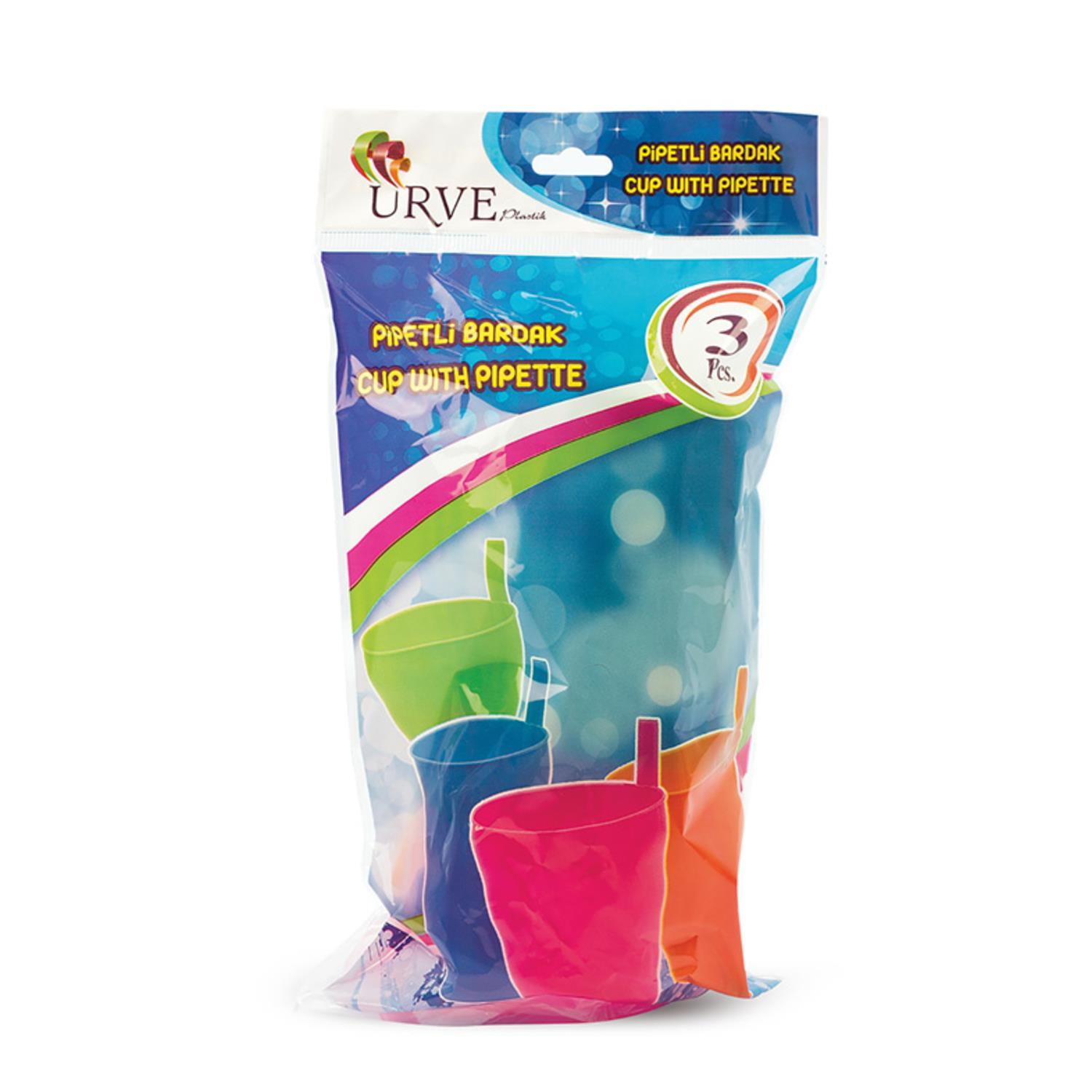 Urve Poşetli Pipetli 3 lü Bardak UR-3181 GKH (UR-3181)