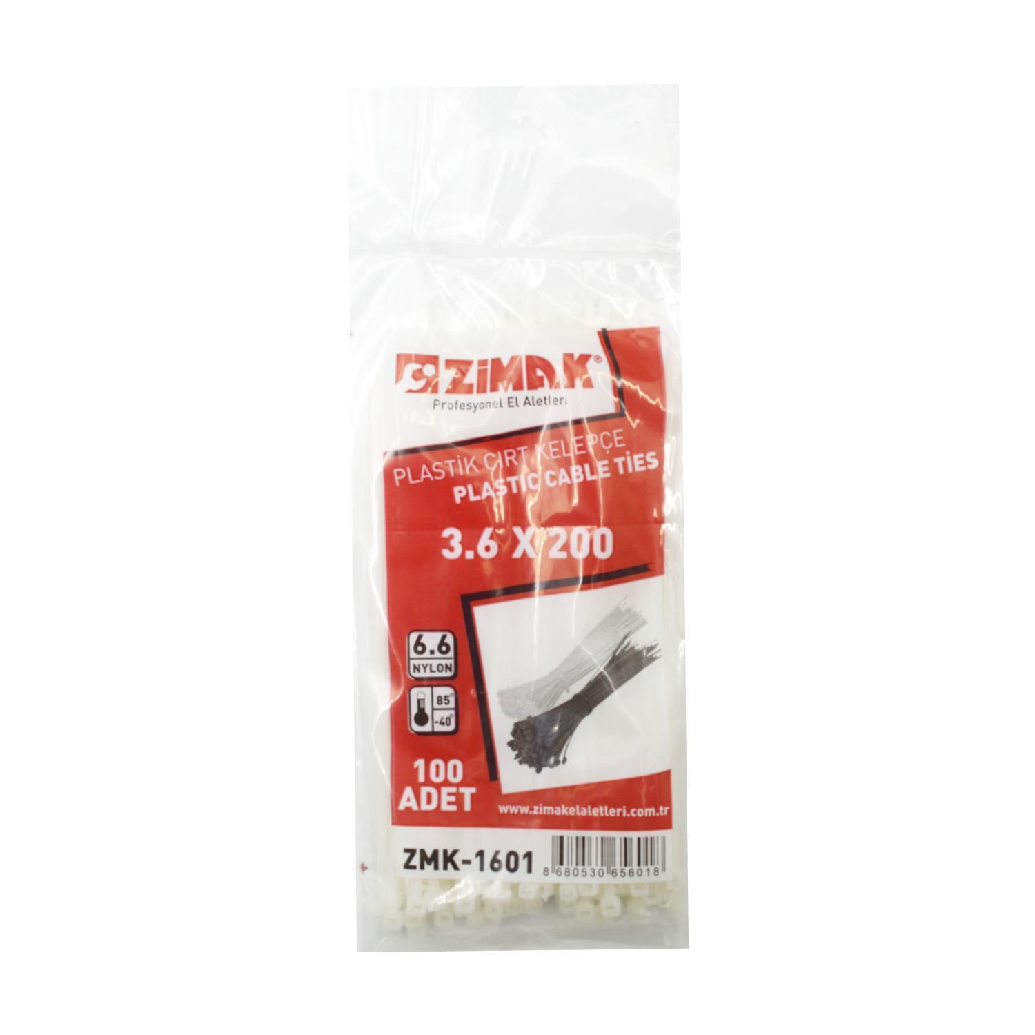 Zimak 3.6x200 mm Beyaz Plastik Cırt Kelepçe - 100 Adet
